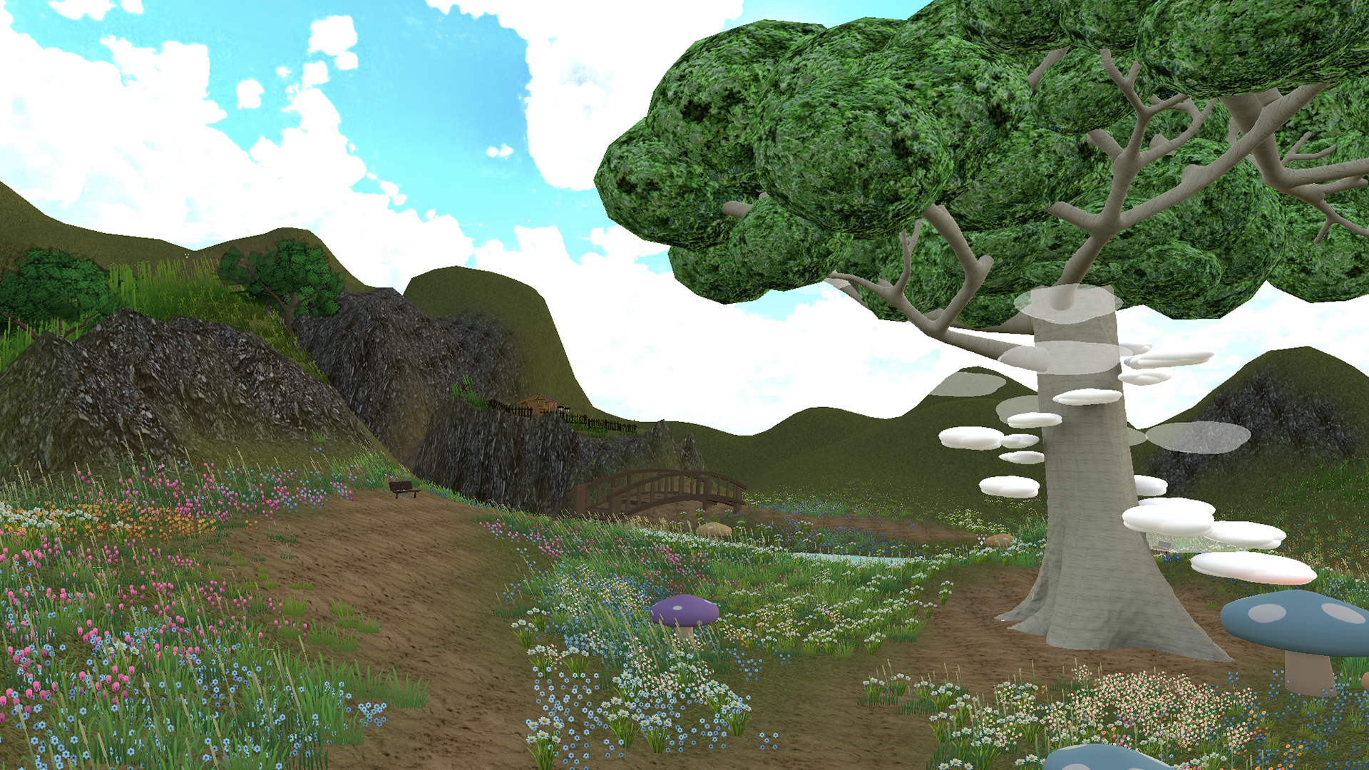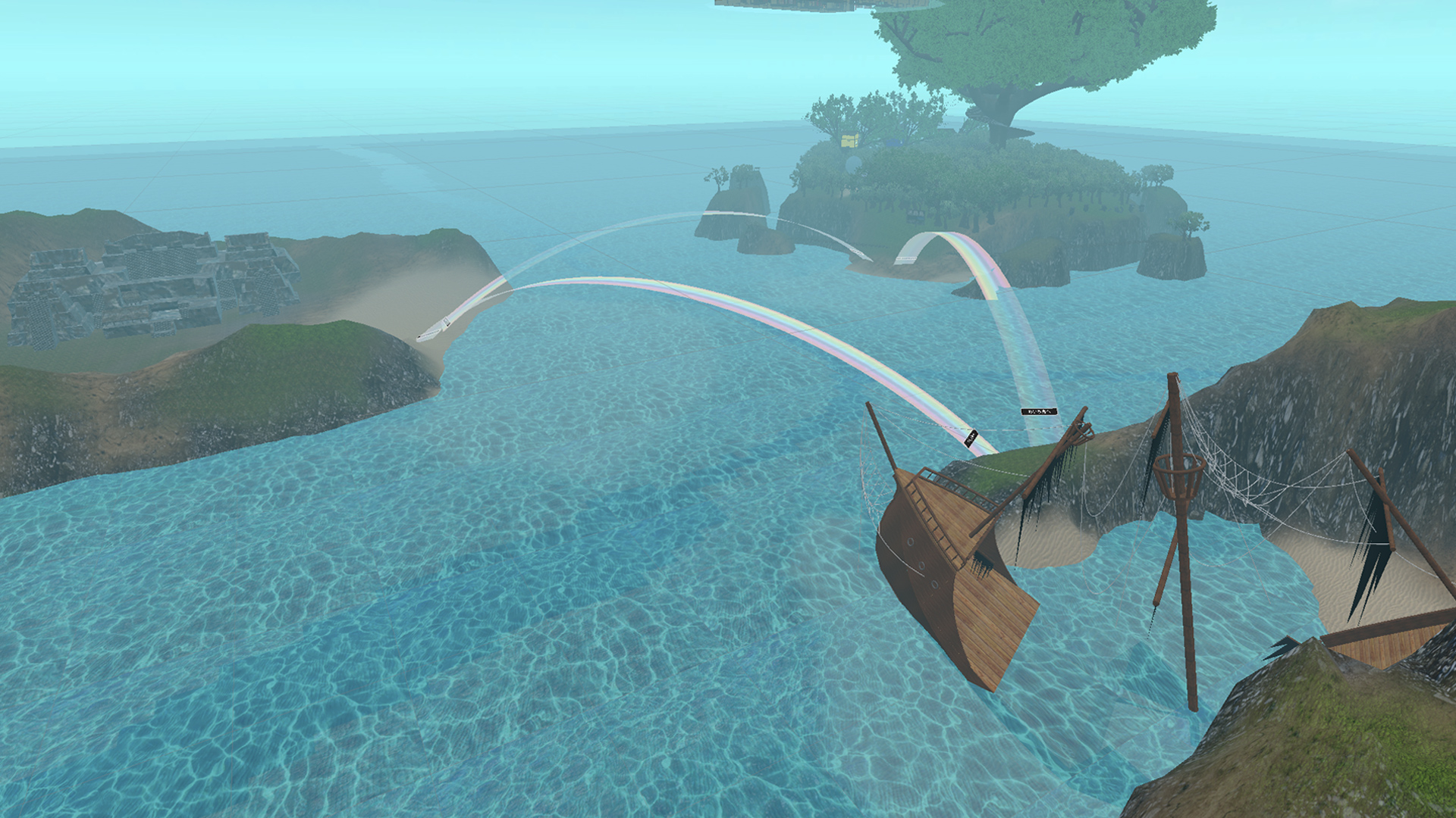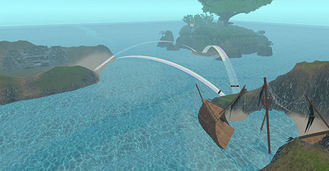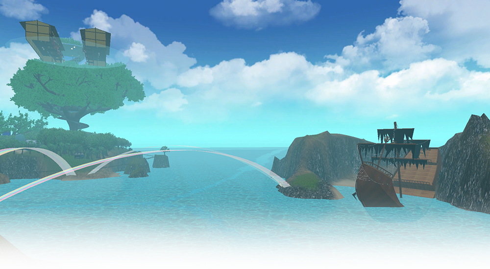 虹を渡って、3つの島(ワールド)を行き来できる壮大な構造です。