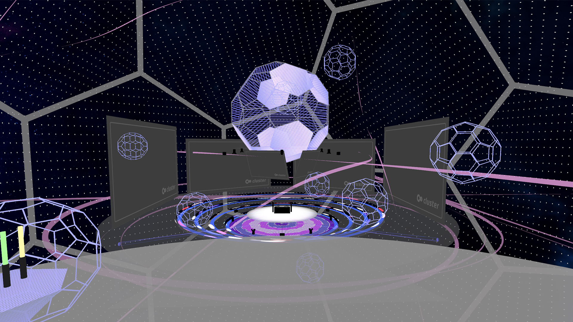 参加者同士のコミュニケーションを図るため、空間にお絵かきをしたり、空飛ぶ絨毯に乗って楽しめる、ちょっとした遊び要素を追加しました。